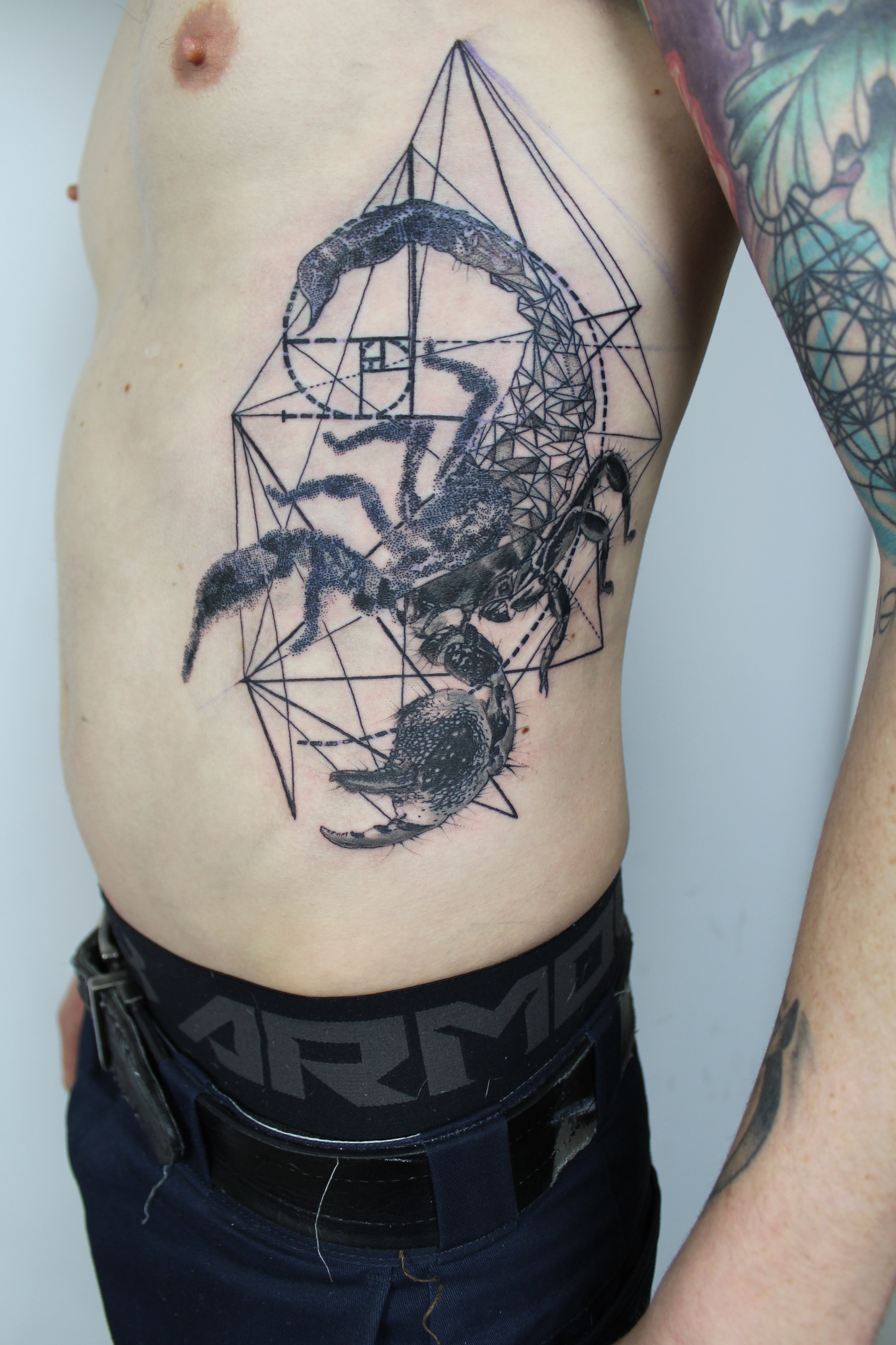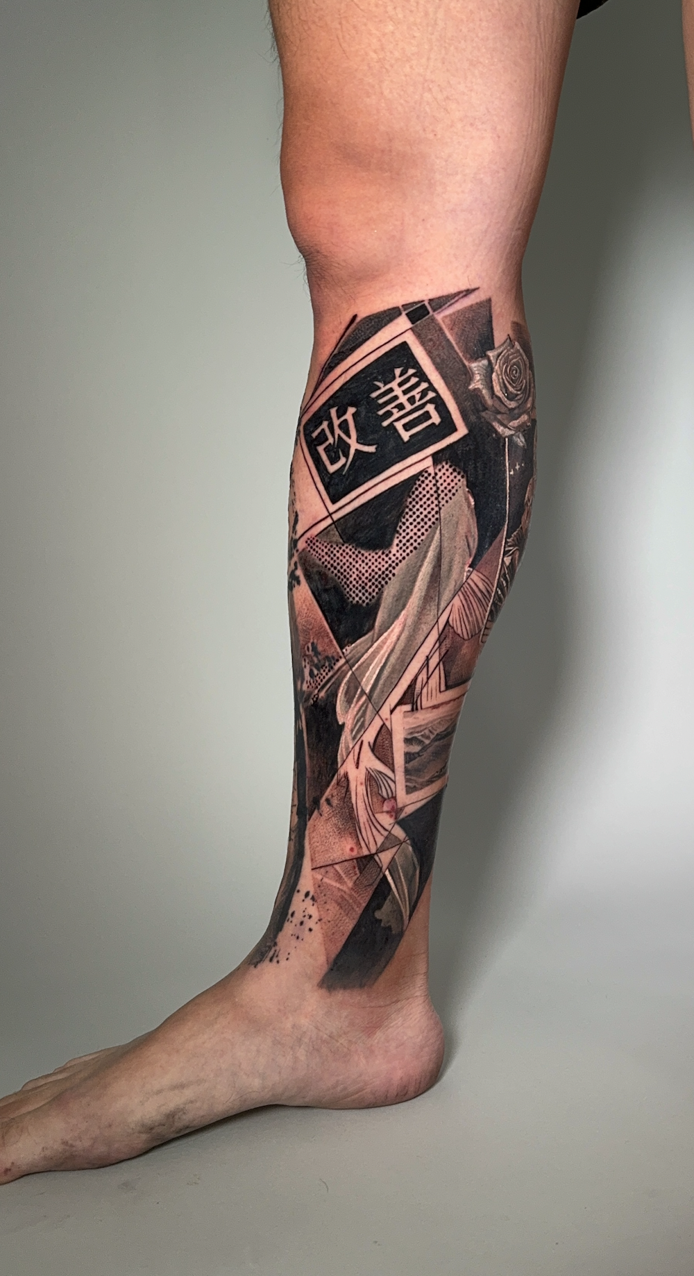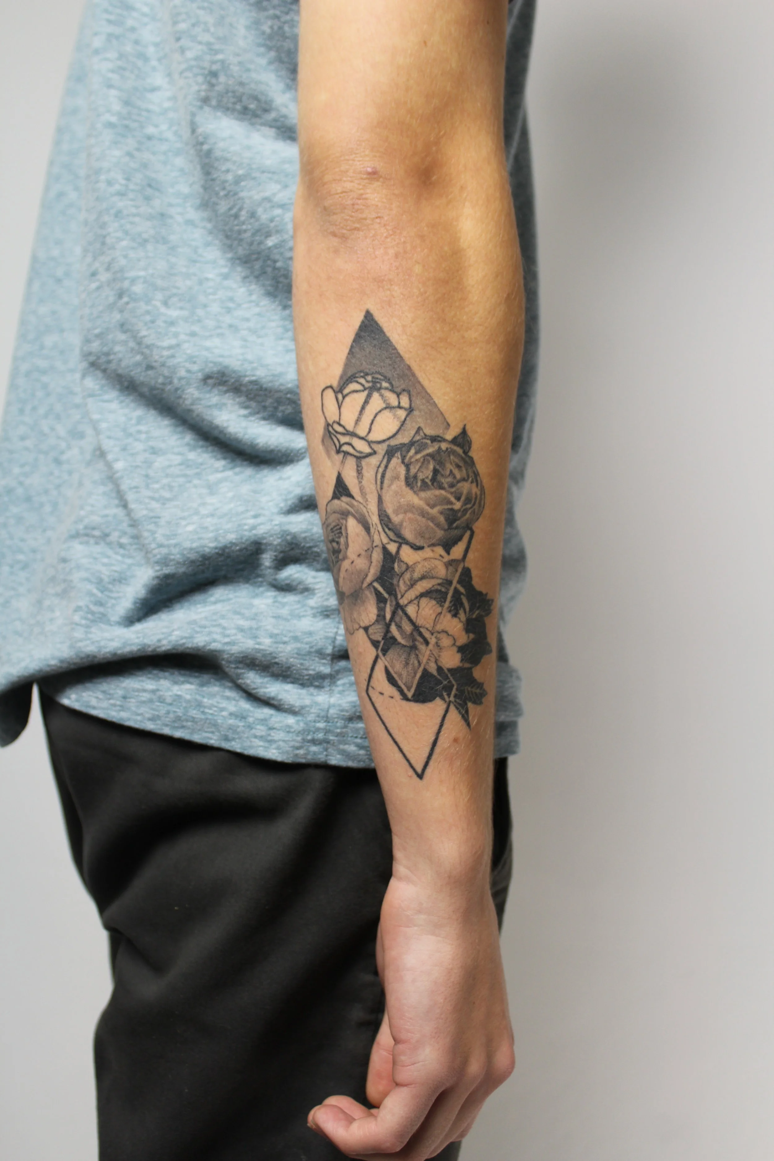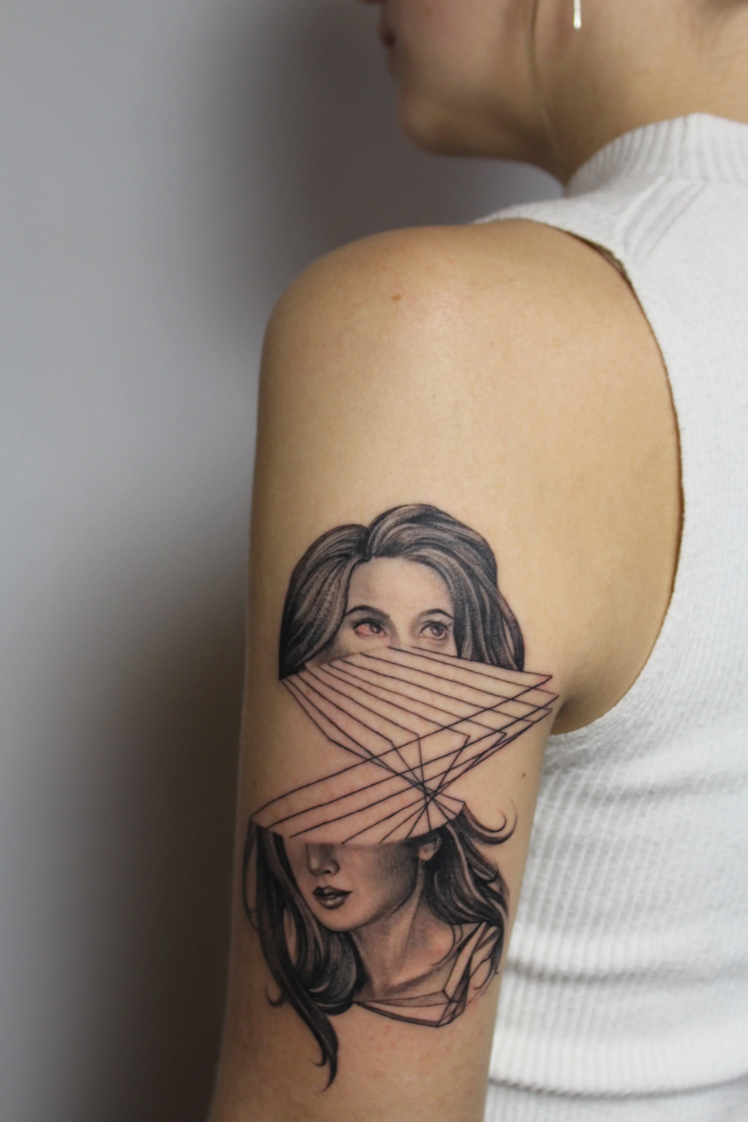 His signature tattoos mix abstract realism with geometric designs. He takes the time to get to know his subject before doing a tattoo, weaving a personalized narrative in clean black ink. Esteban strives for each of his tattoos to stand the test of time, both physically and in its significance to the individual.