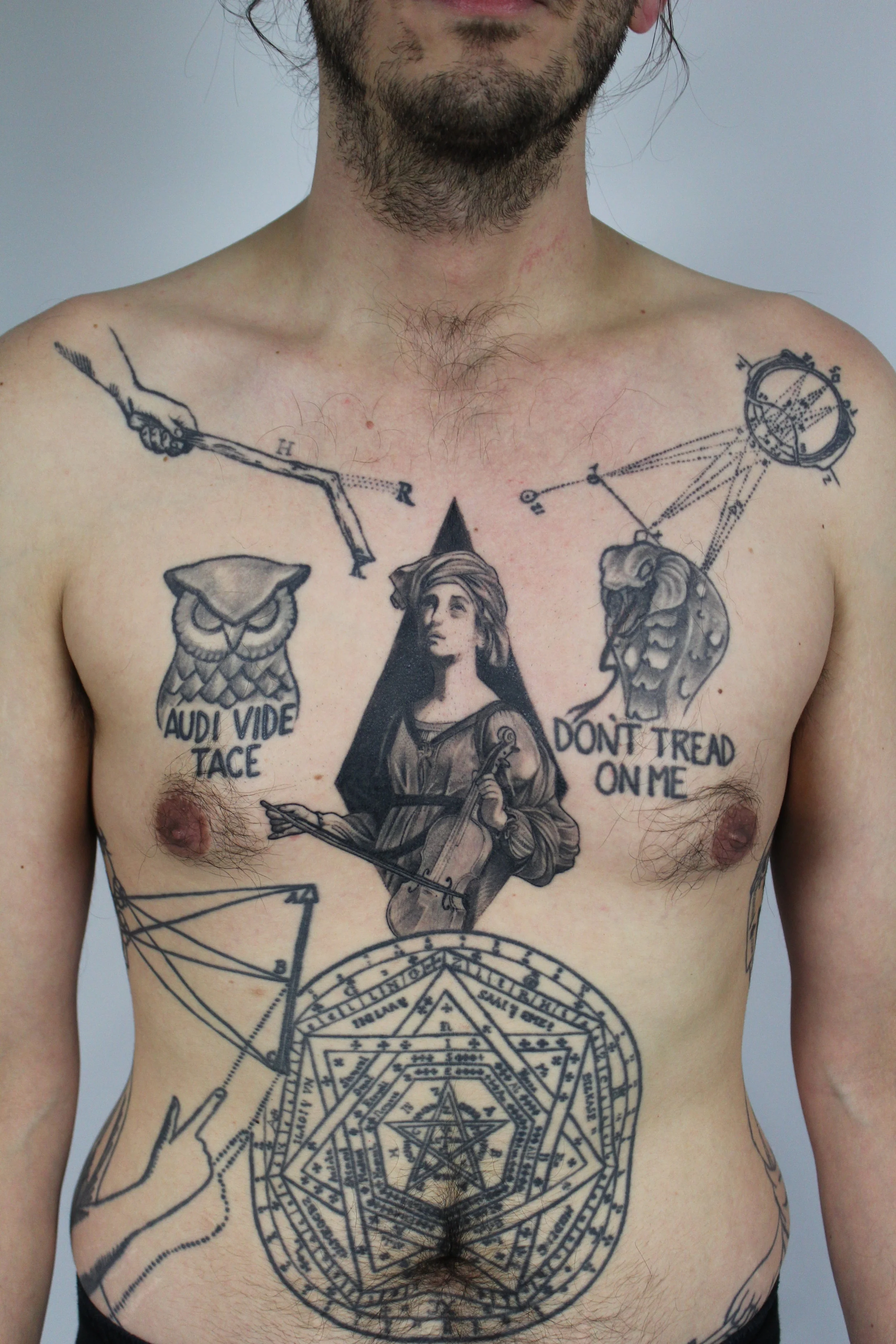 Esteban credits a wide range of influences in the formation of his tattooing style. A background in graphic design and fine art granted him an in-depth understanding of detail and quality as they apply to artwork.